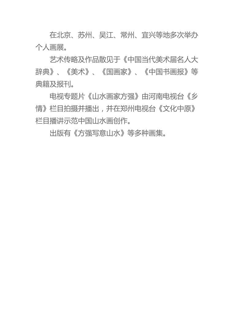 电视专题片《山水画家方强》由河南电视台《乡情》栏目拍摄并播出,并在郑州电视台《文化中原》栏目播讲示范中国山水画创作。